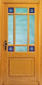 Glas: Klar plan, mit blauem Glas, Motiv „Blumenschliff“ in den Ecken